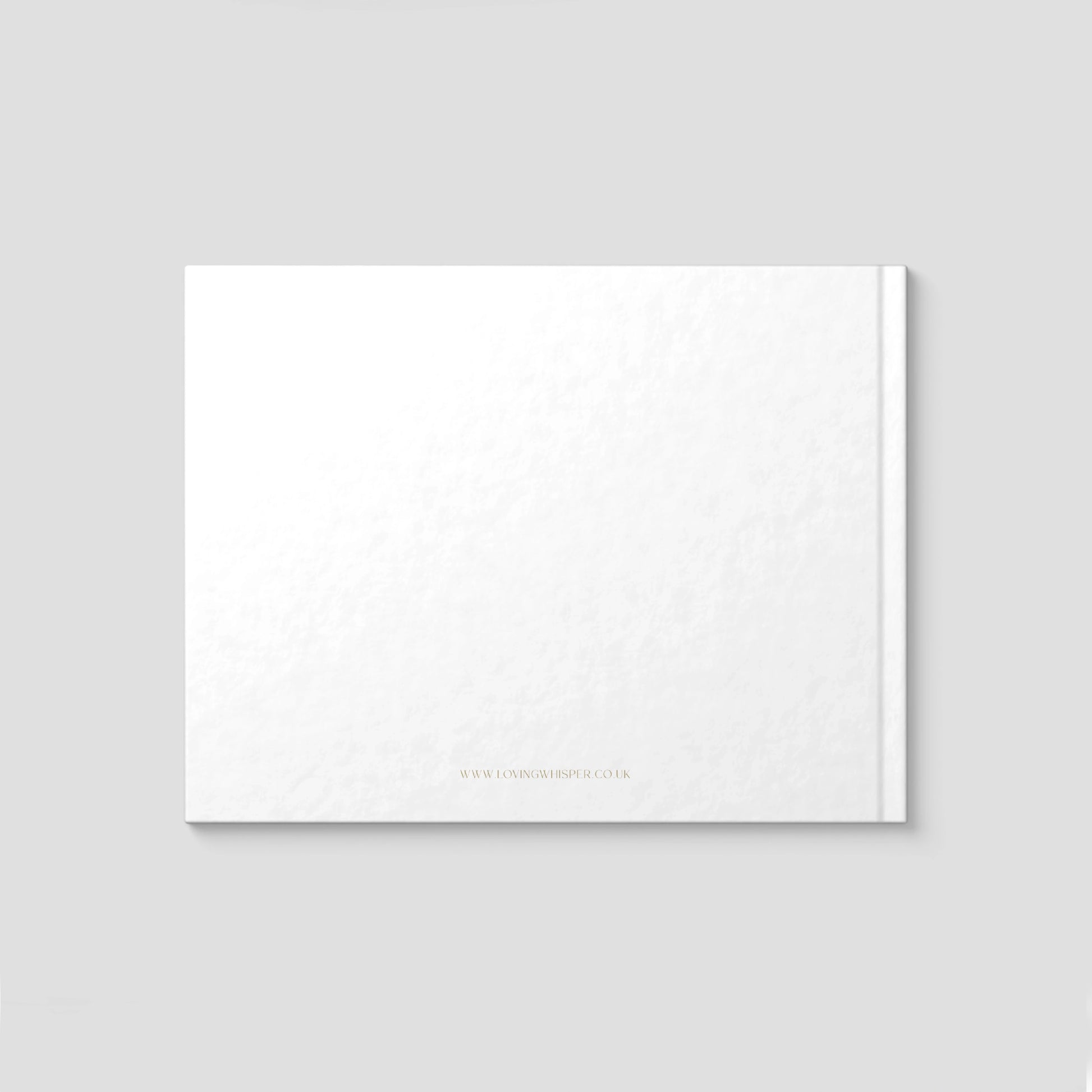 This personalised white condolence book offers a clean, elegant tribute to a loved one’s memory. Featuring a soft white hardcover with a beautifully displayed name and photo, its minimalist design provides a peaceful space for reflection. Inside, guests can leave heartfelt messages on lined pages, with a dedicated photo page and a touching quote. Ideal for funerals, memorials, or celebration of life services, it serves as a timeless keepsake to honour and remember.