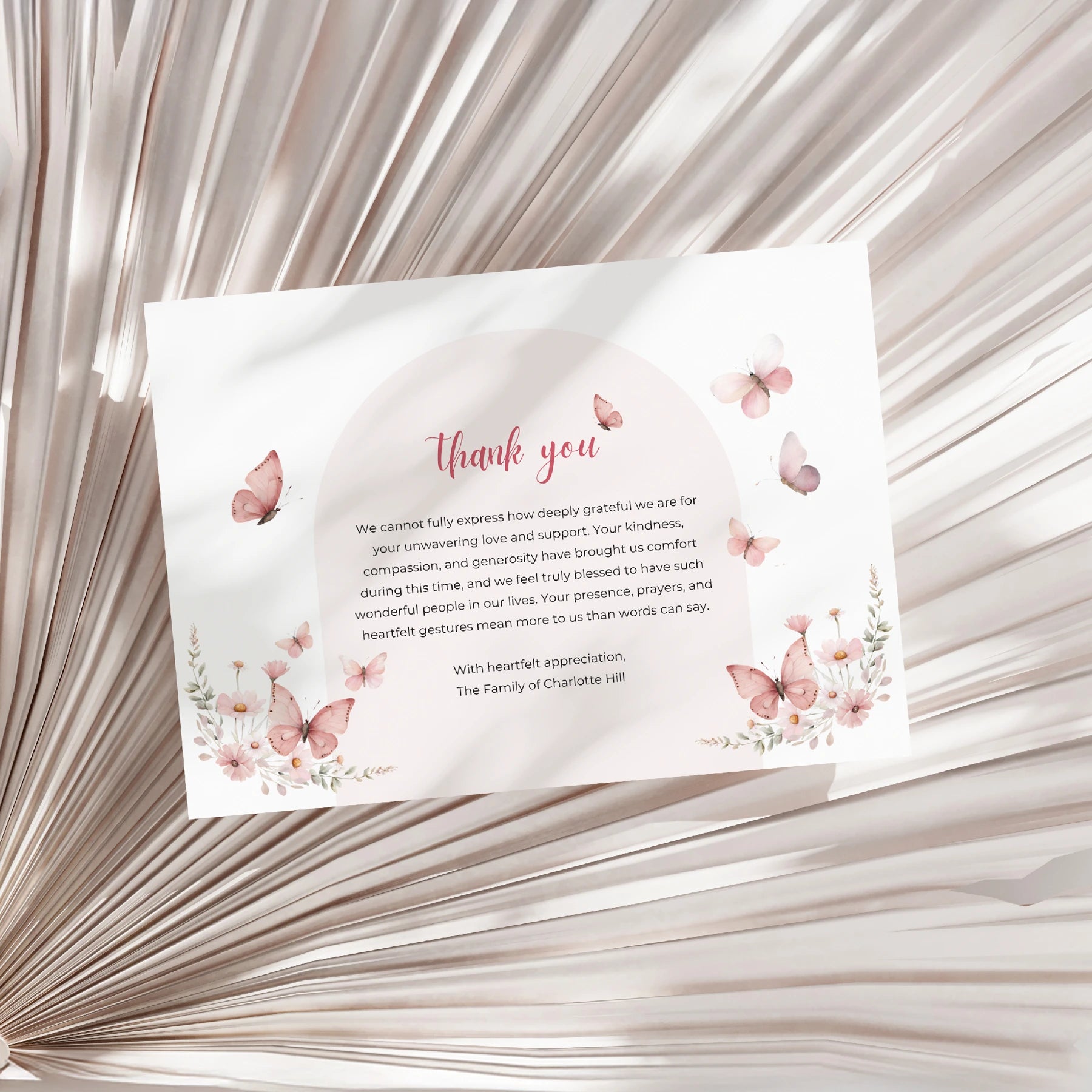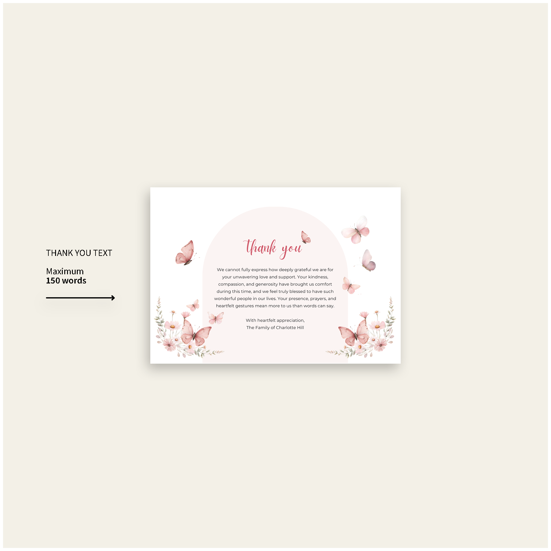 In times of loss, the support of loved ones means so much. Express your gratitude with a beautifully crafted message, personalised and accompanied by an envelope.